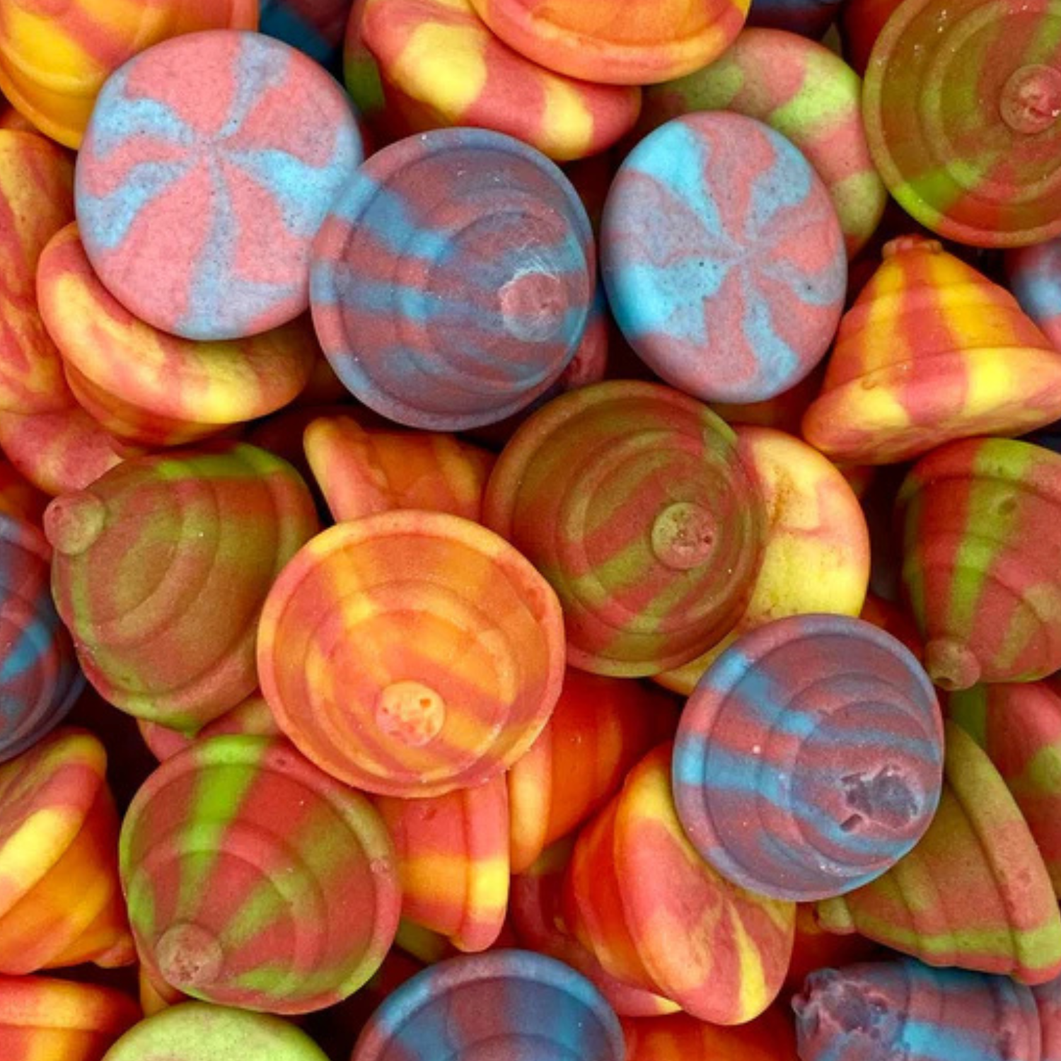 Toupies gommeuses colorées aux fruits, Parfaites pour fêtes d’enfants, anniversaires et autres événements festifs !
