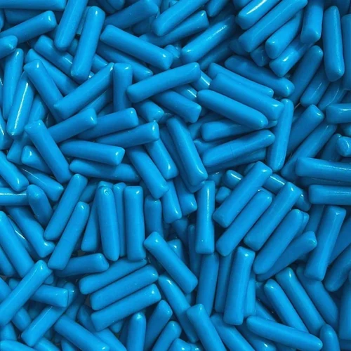 Ingrédients: sucre, sirop de glusose, graisse de palme, 5% jus de fruits à base de concentrés (pomme, pêche, citron, fraise, framboise), gélatine*, stablilisant : gomme arabique ; amidon modifié, dextrose, acidifiants : acide lactique, acide citrique; arôme, émulsifiant : lécithines; colorants : bleu brillant FCF; agents d’enrobage : cire de carnauba, shellac, cire d’abeille blanche et jaune. *gélatine bovine