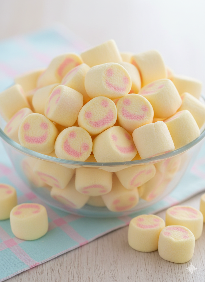 “Succombez à la légèreté absolue de notre nouveau marshmallow. Une texture aérienne, un goût délicieusement sucré et une tendresse incomparable qui vous transporte instantanément en enfance. Attention : l’essayer, c’est ne plus pouvoir s’en passer !”